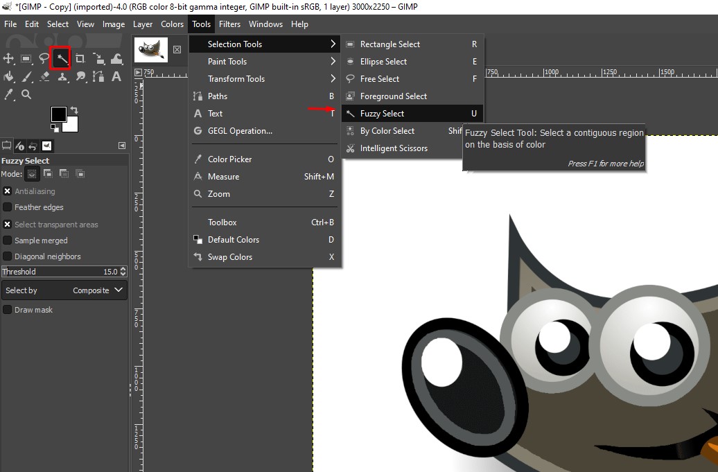 Select the Fuzzy Select Tool (U)