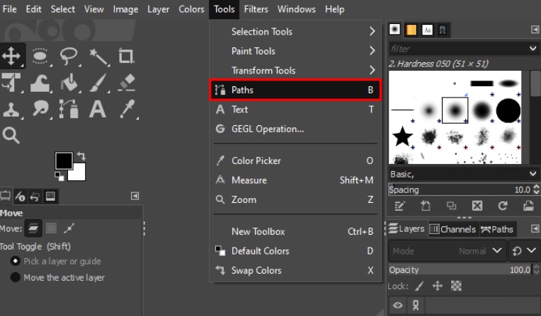 How it works: The Paths Tool lets you manually trace your subject using vector paths. It’s the most precise method in GIMP—but also the most time-consuming.